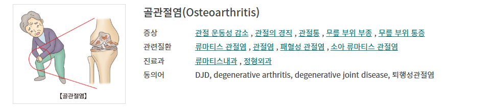 - 관절염(특히 퇴행성 관절염)