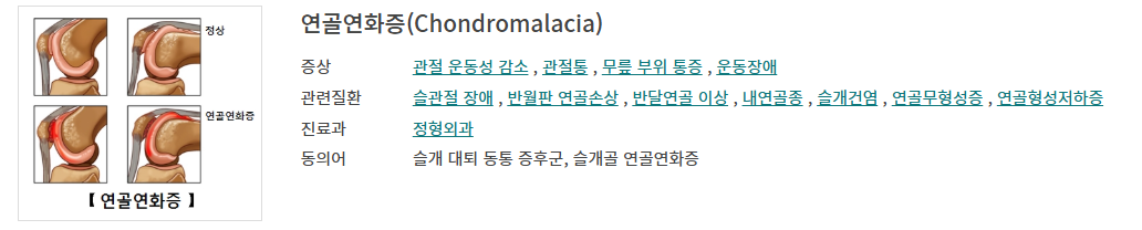 | 반월상연골 손상 | 무릎 연골판 손상 | 무릎 걸림, 찢어지는 통증 |