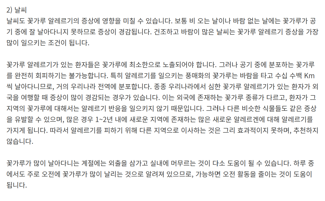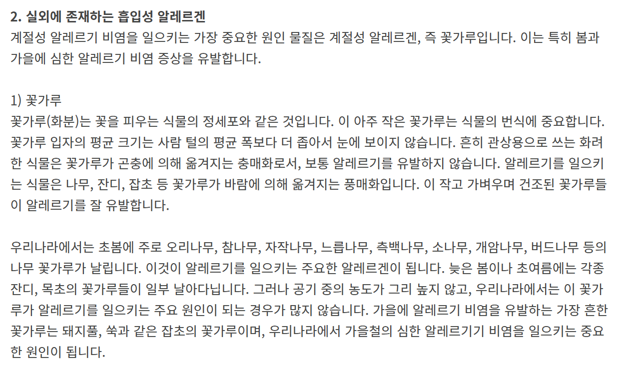 | 꽃가루 | 봄, 가을에 심해지는 계절성 원인 |