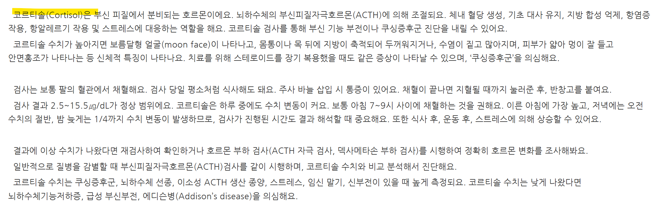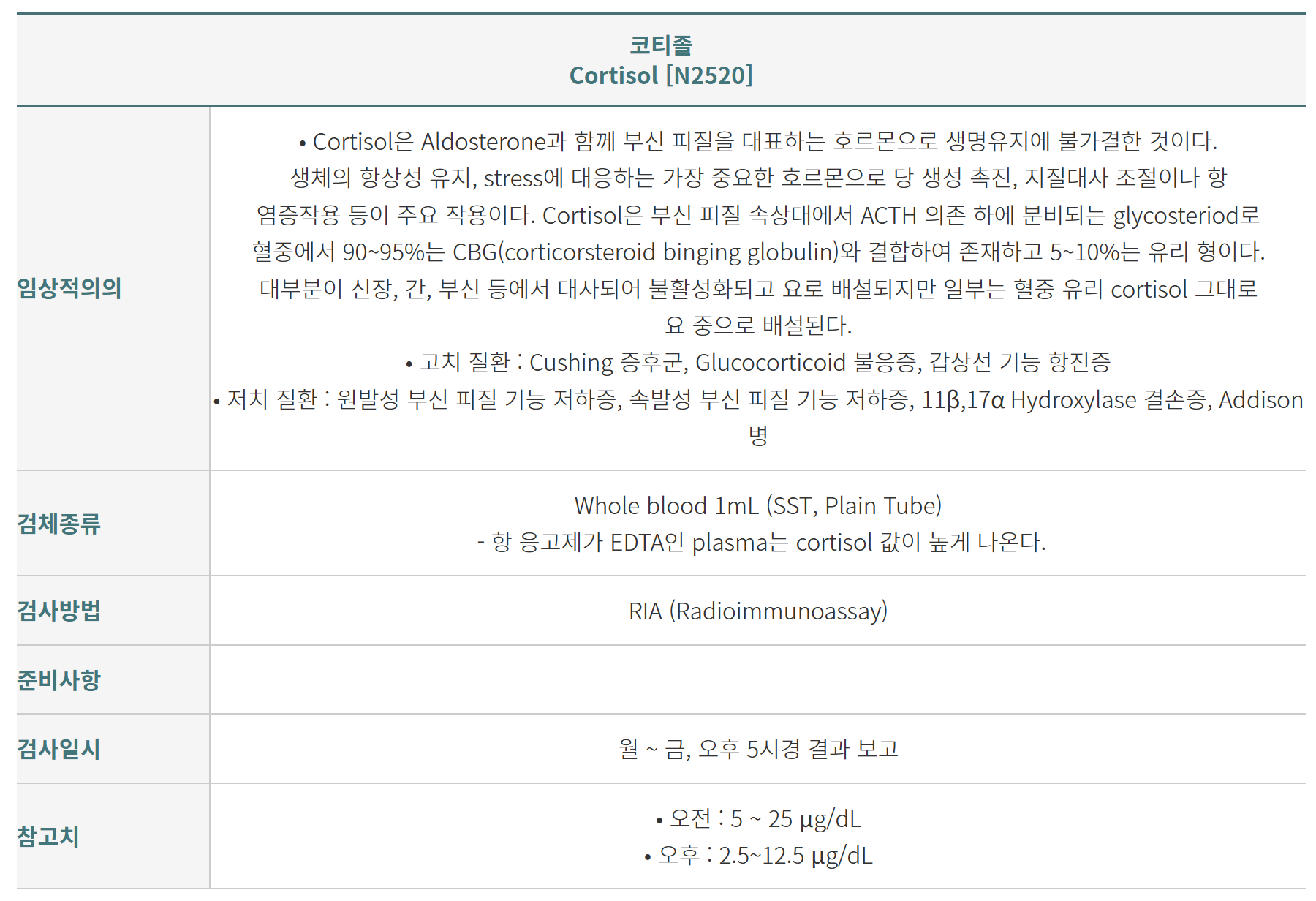 - 코르티솔 타액 검사: 하루 4번 측정해 리듬 파악