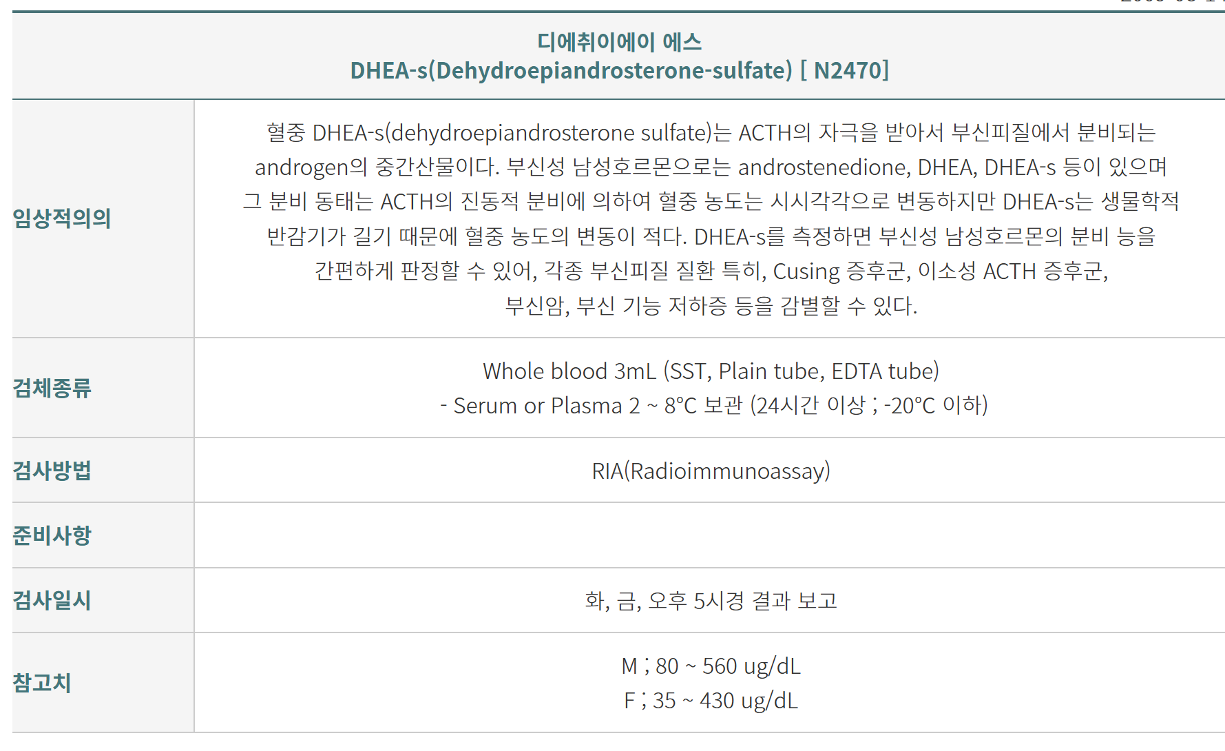 - DHEA 수치 검사: 부신 기능 보조 지표 확인