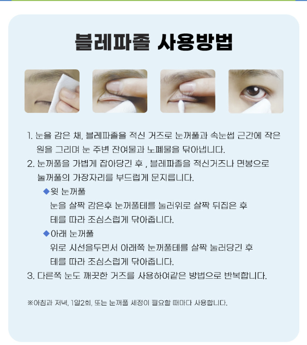 눈꺼풀 청결을 도와 다래끼를 예방할 수 있는 제품입니다.