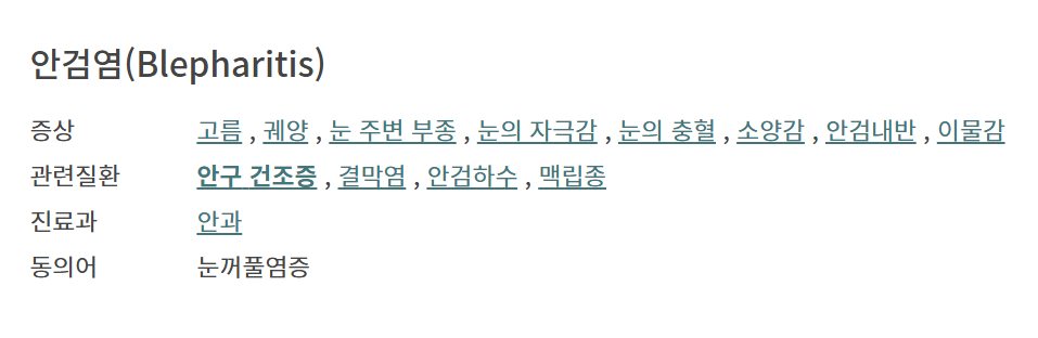 | 증상 | 뻑뻑함, 흐려짐, 충혈, 피로 |