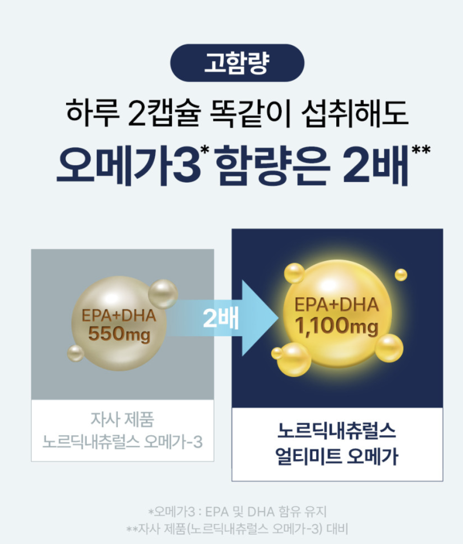 | 함량 | EPA+DHA 합산 1000mg 이상 추천 |