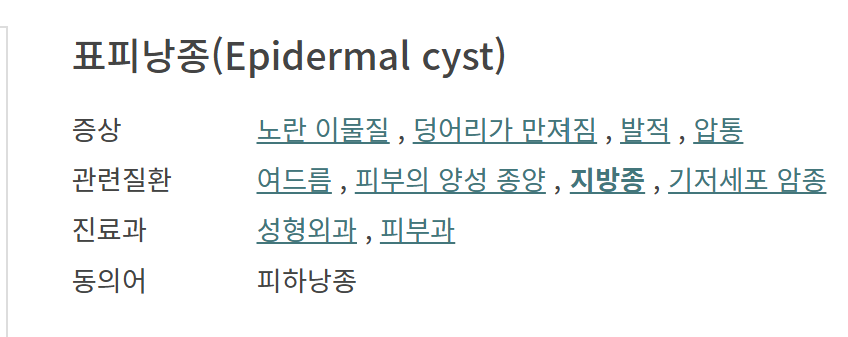 | 구분 | 지방종 | 피부낭종 (표피낭종) |