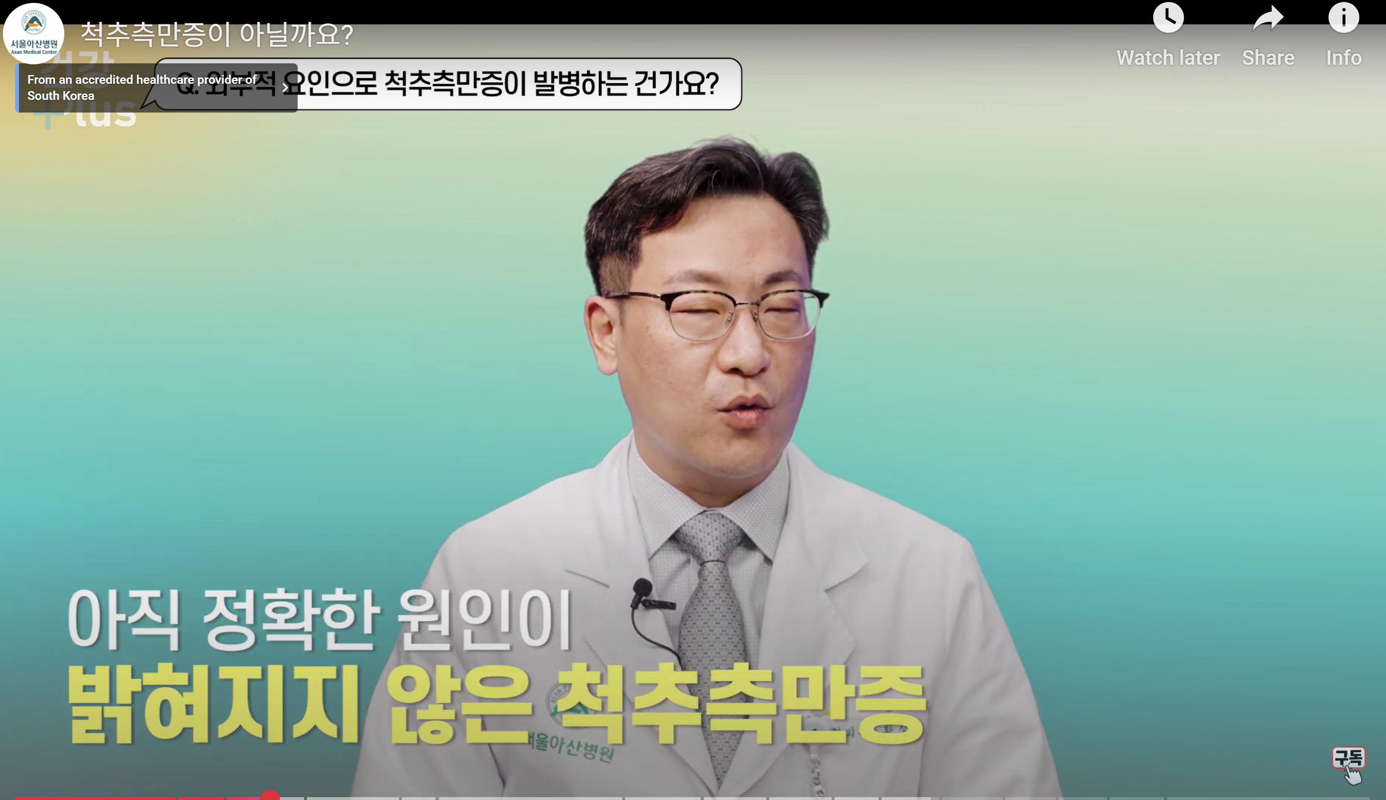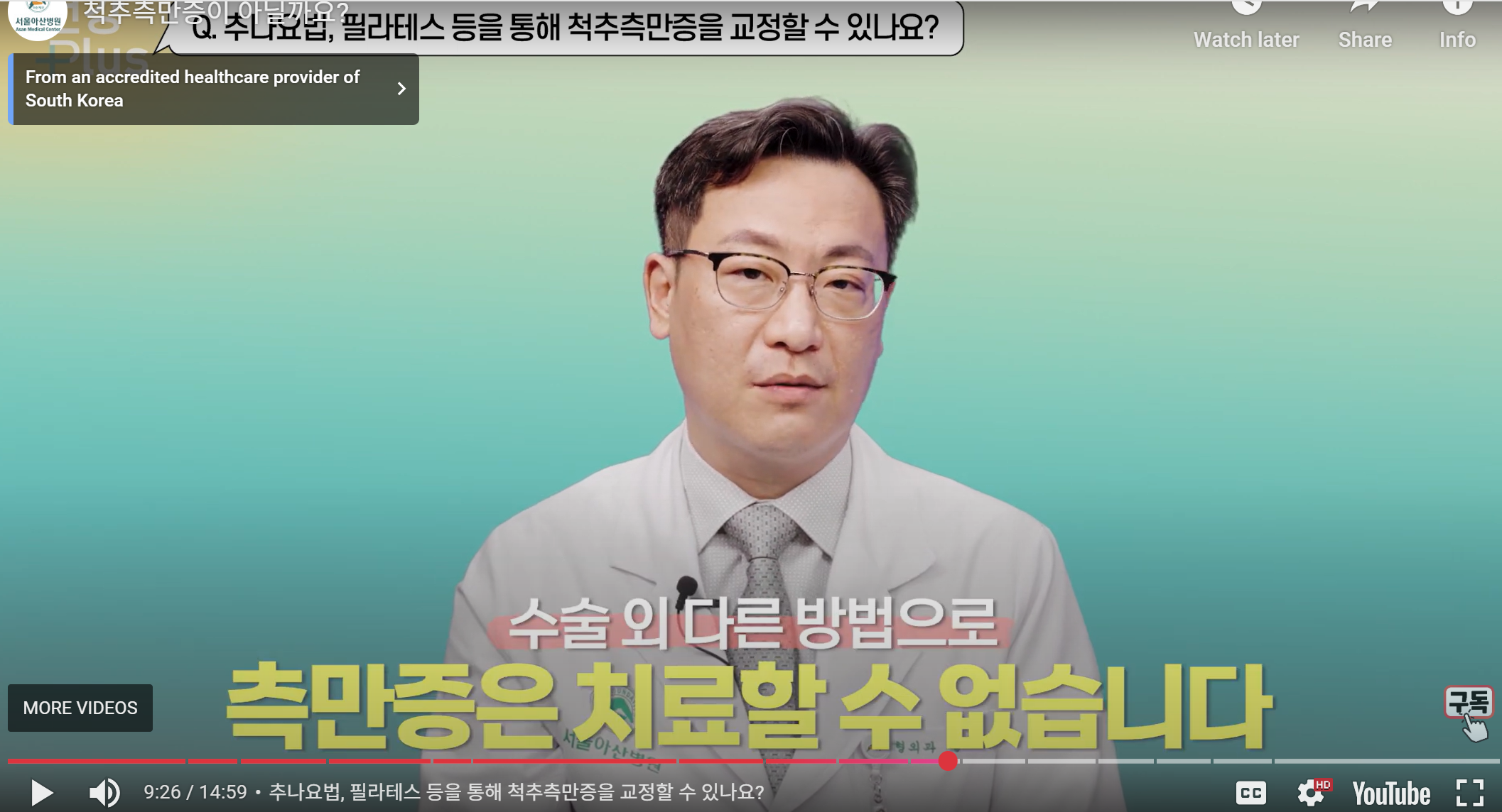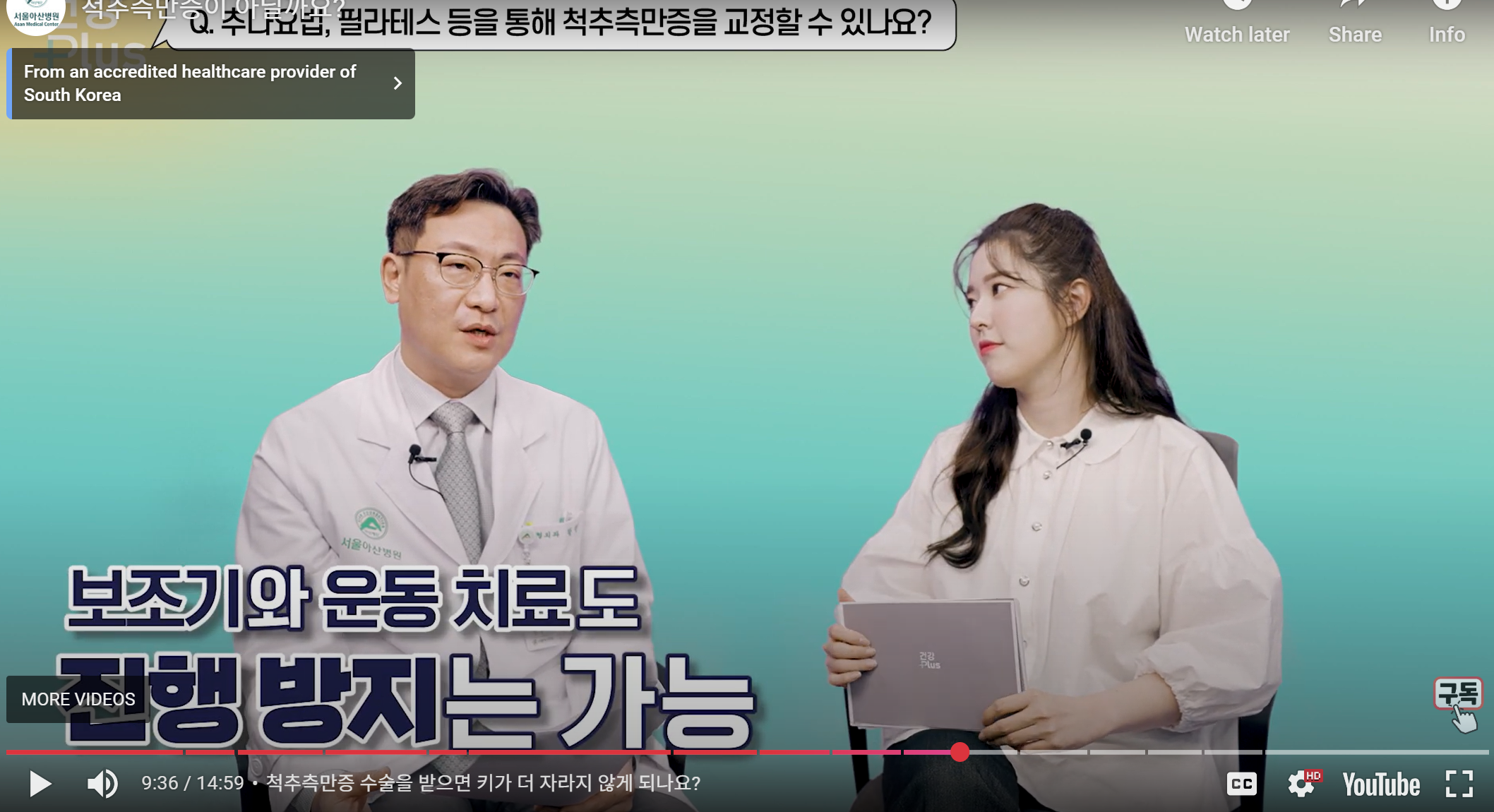 척추측만증은 수술이 아니면 치료가 안되고 운동 밖에는 방법이 없다고 합니다.