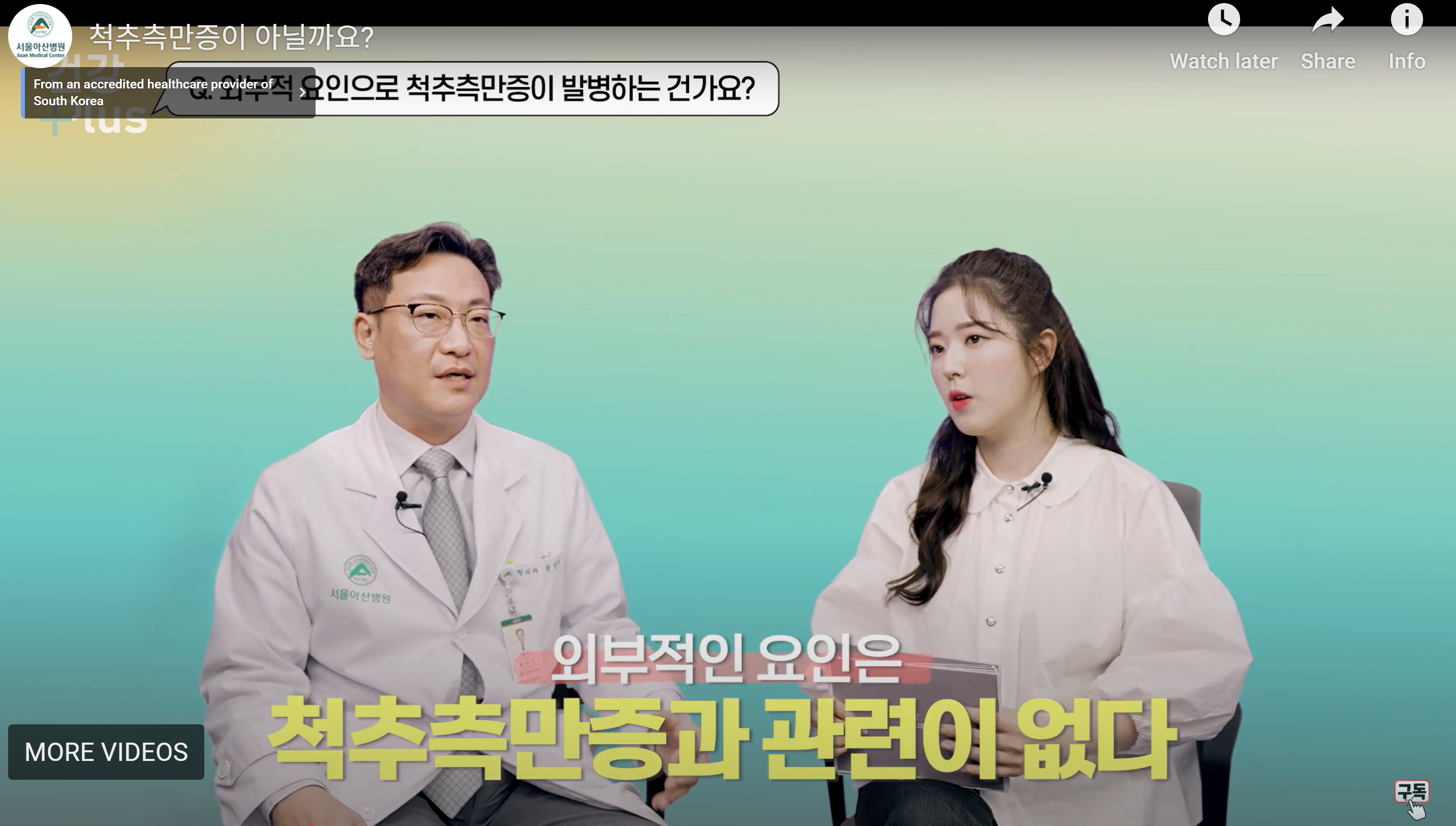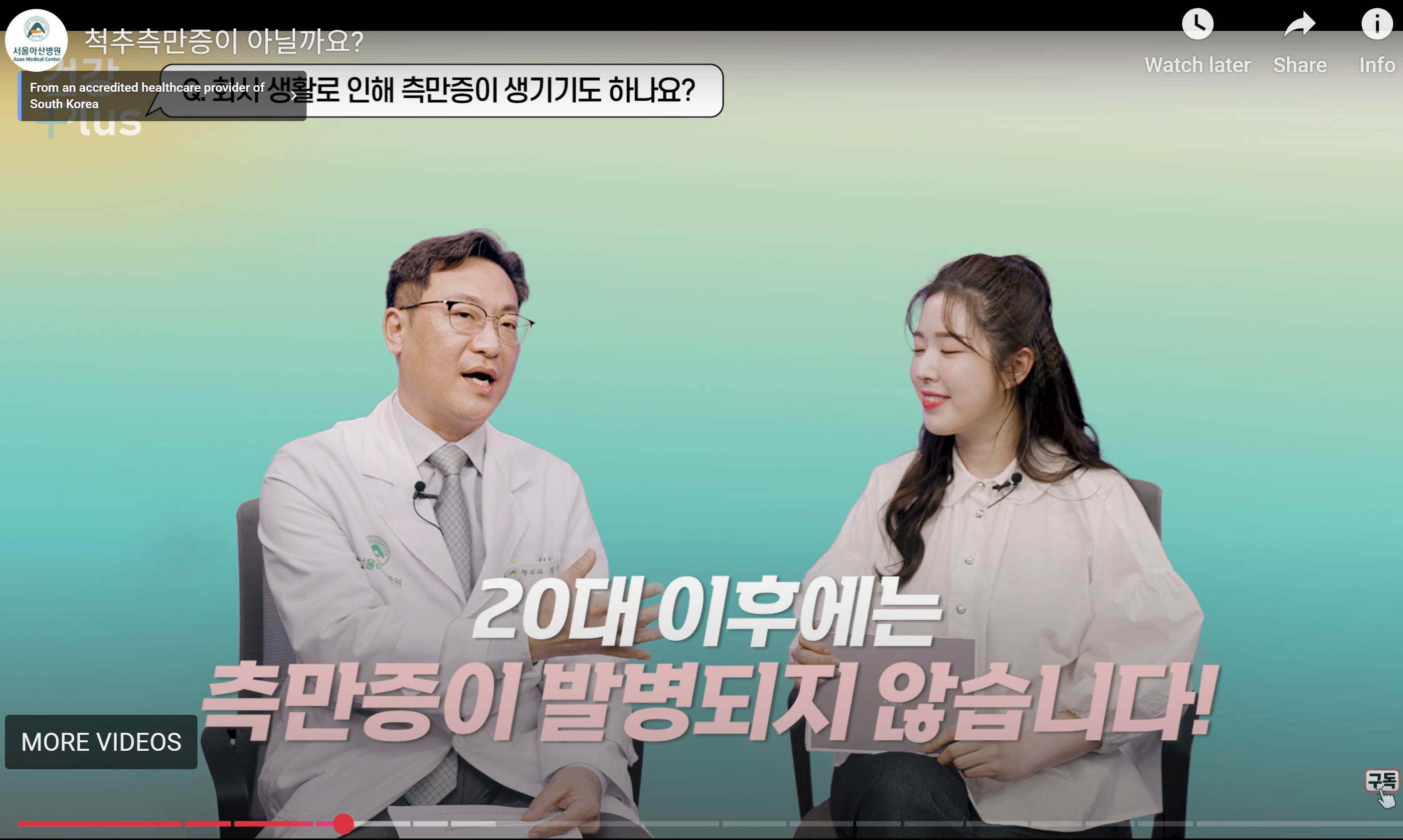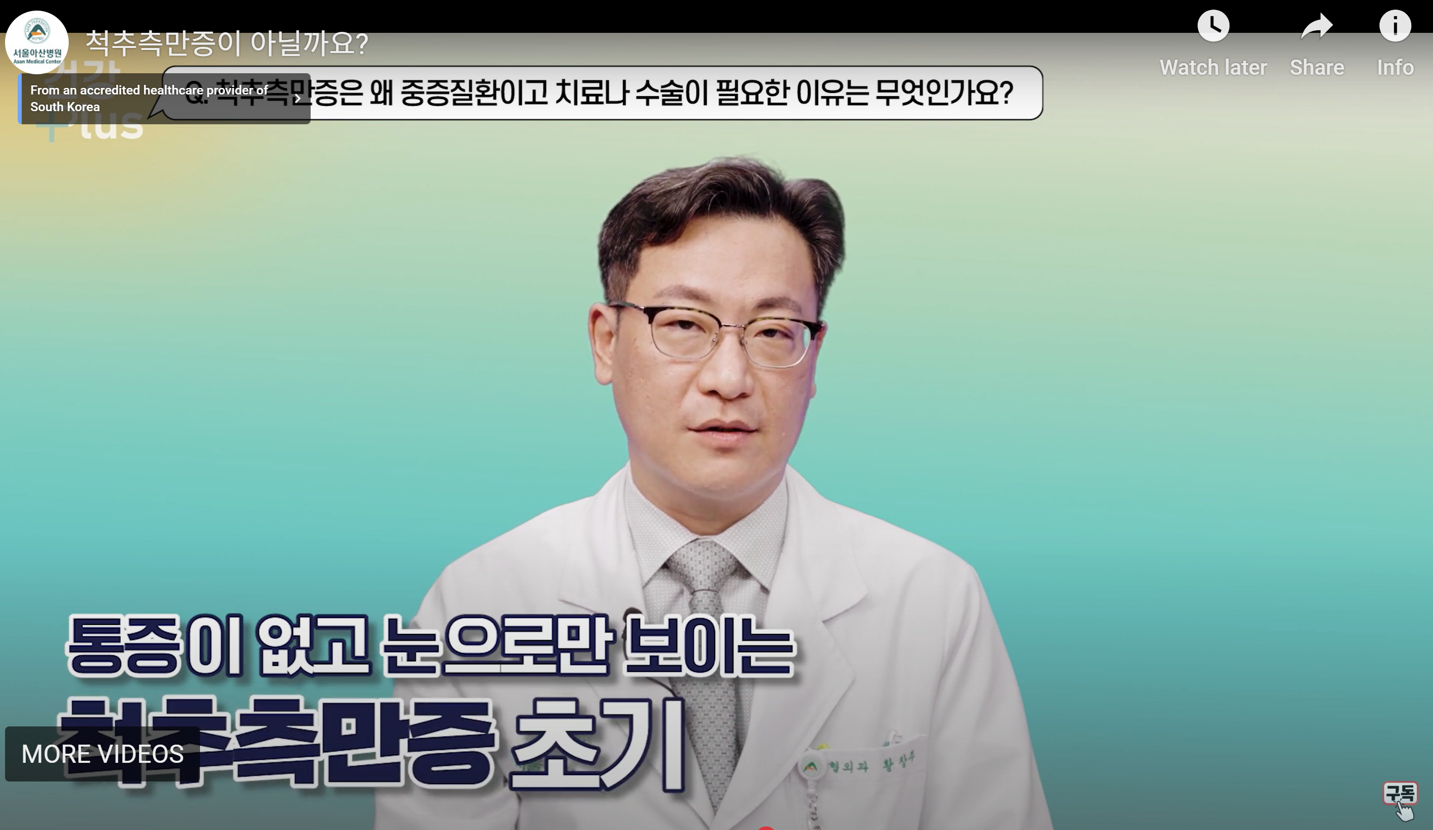- 병원 선택 시, 재활의학과, 정형외과, 통증의학과 중 척추측만 치료 경험이 많은 곳을 선택하세요.