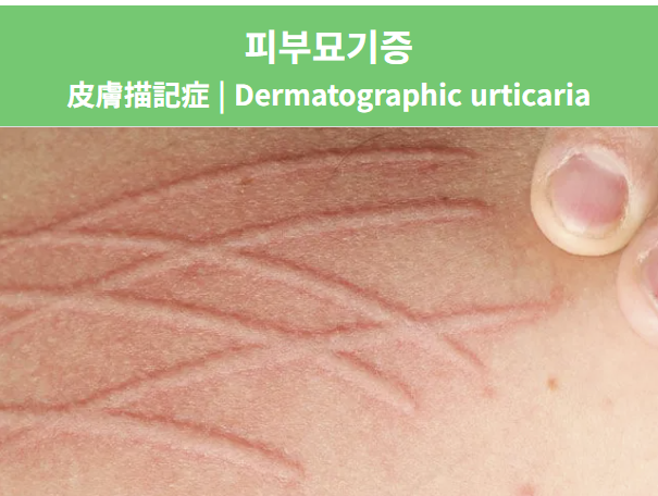 | 강한 긁힘 | 선 모양의 두드러기 |