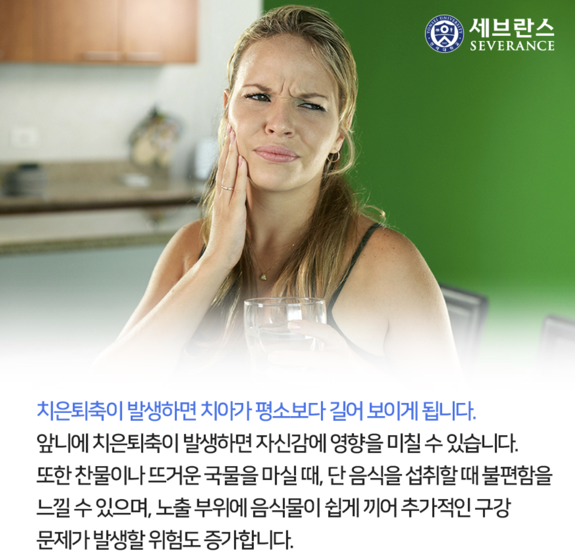 치아가 길어 보이고 시린 증상, 음식물이 더 잘 끼는 등의 문제가 발생할 수 있습니다.