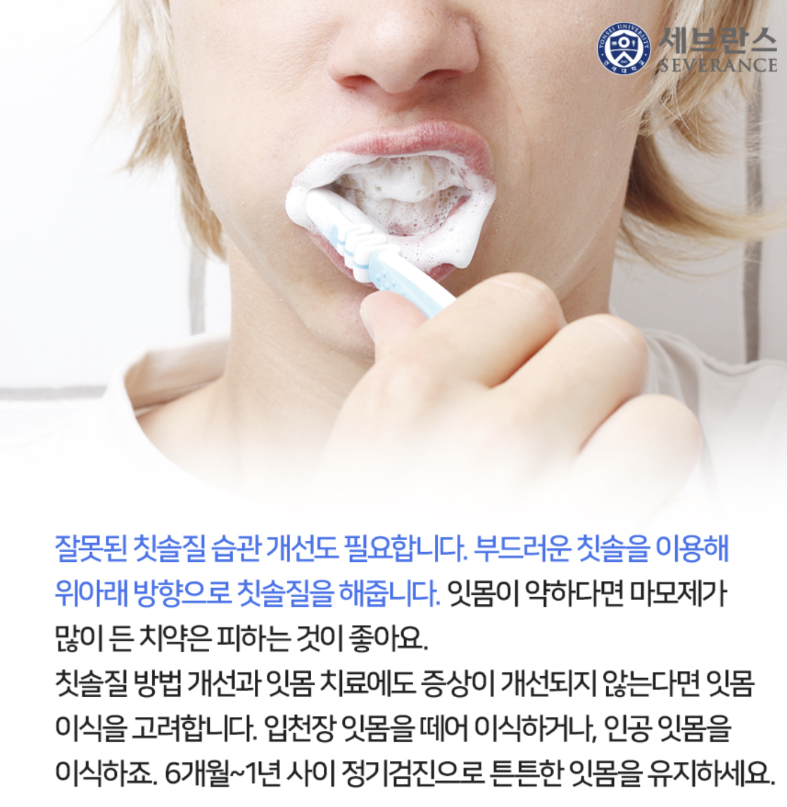 - 양치 습관 유지, 잇몸 마사지도 도움됩니다
