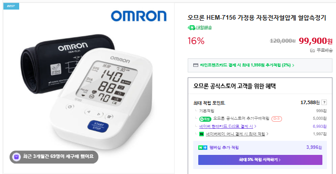 혈압측정기는 오므론께 후기가 많아서 이걸로 샀던거 같아요 고장 안나고 잘 사용하고 있어요!