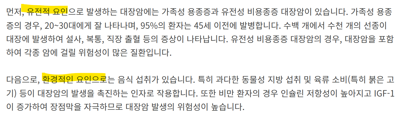 ✔️ 대장암 – 선종성 용종이 가장 대표적인 원인으로 꼽힙니다.