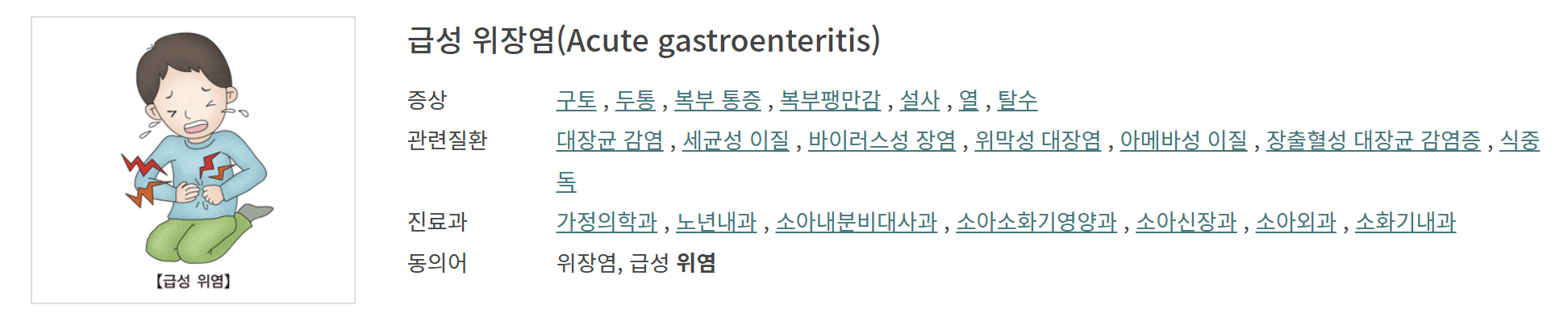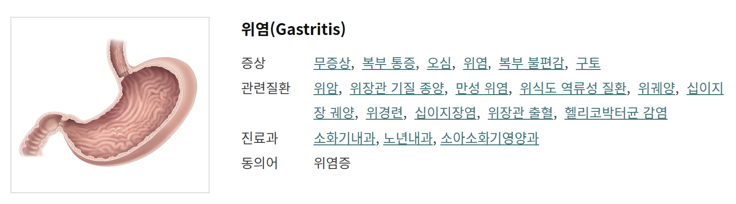 | 구분 | 위염 | 위궤양 | 식도염 | 신경성 위염 | 급성 위염 |